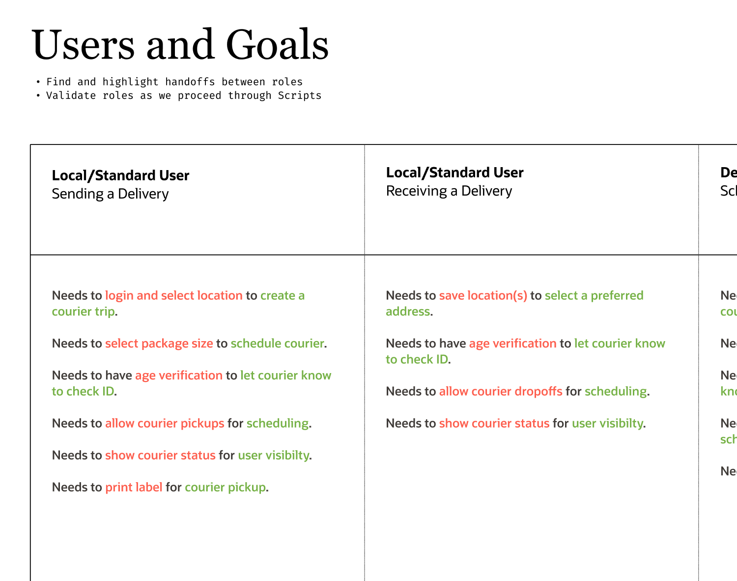 User Script Storyboarding - Sending Delivery
