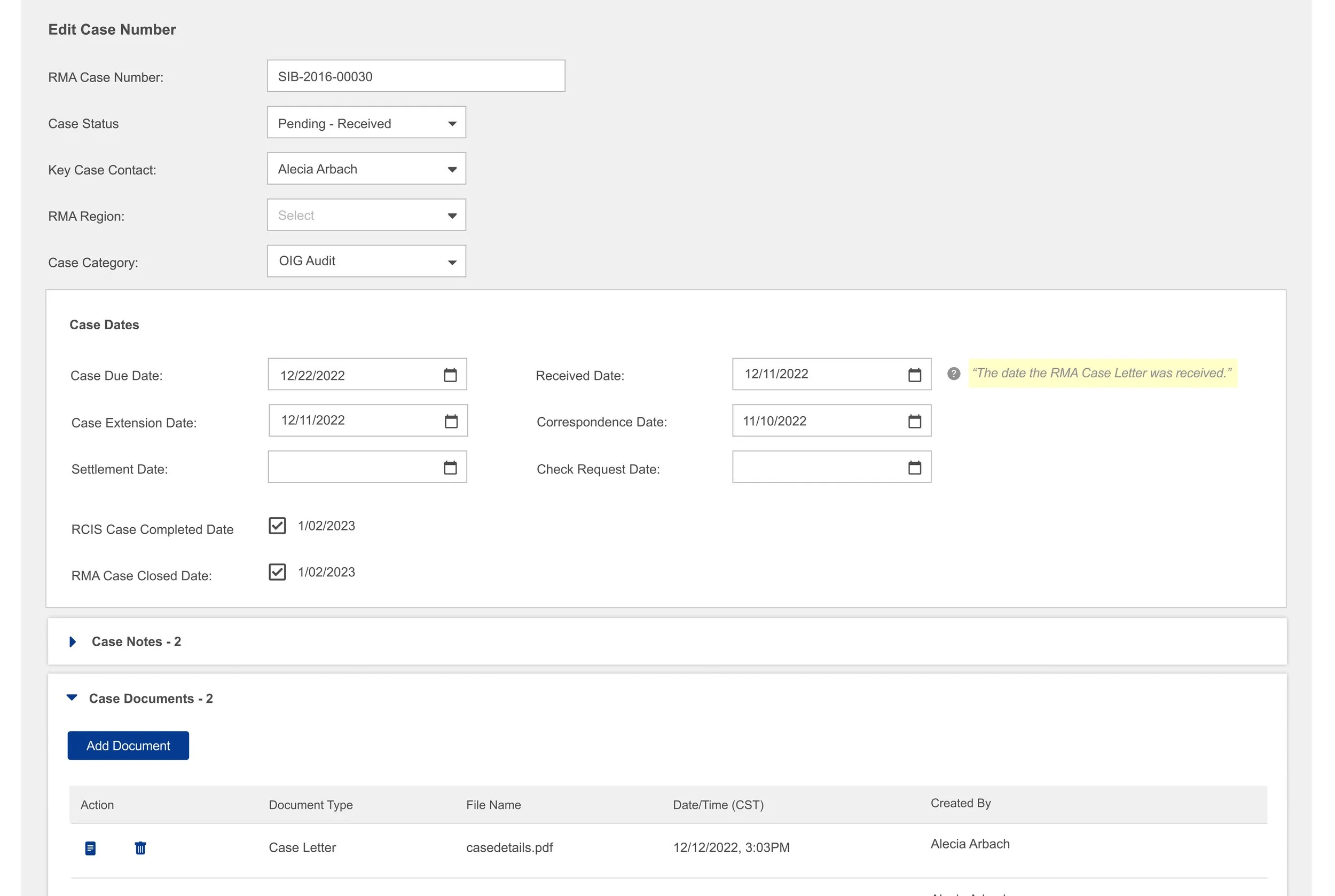 Goal: Redesign an existing case tracking product to improve user experience and satisfaction.